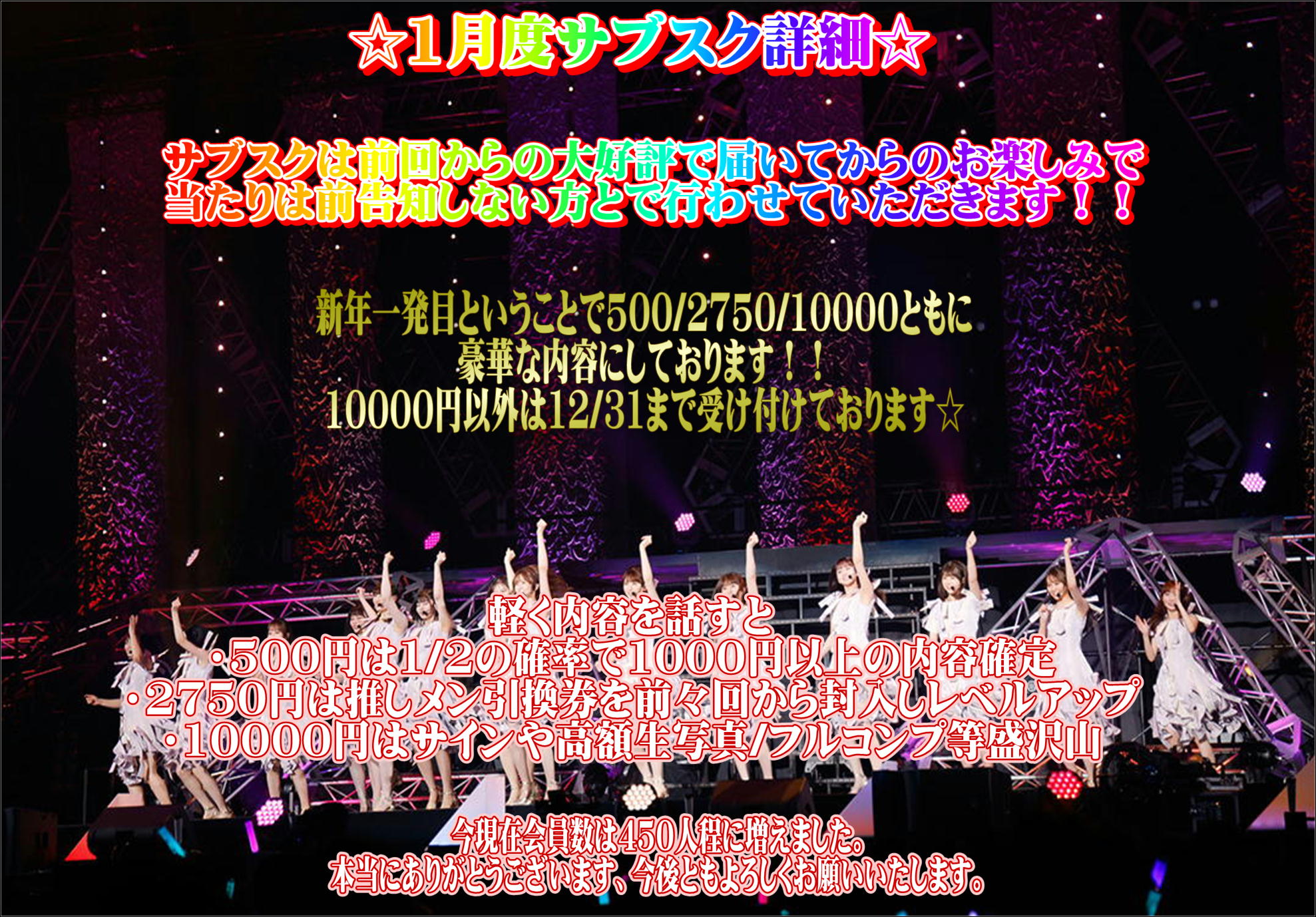TOP 乃木坂46 定期会員(サブスク)購入商品 表示切替: 写真のみ 説明付き 並び順: 標準 レビューの多い順 おすすめ商品順 新着商品順 値段の安い順 値段の高い順 名前:昇順 名前:降順 在庫: 在庫あり 在庫なし含む 2件中1件~2件を表示 商品一覧 乃木martサブスク月額2750円(特典は二枚目をご覧ください)※おひとり様1点まで ¥2,750(税込) 乃木martサブスク月額500円(特典は二枚目をご覧ください)※おひとり様1点まで ¥500(税込) 2件中1件~2件を表示